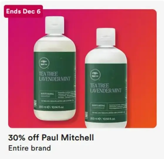 Get it now! Shop in store and get 30% off Paul Mitchell.